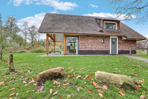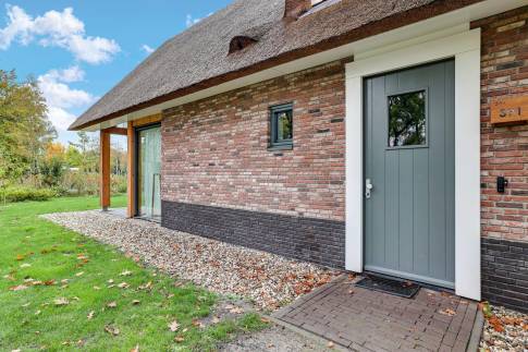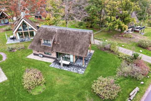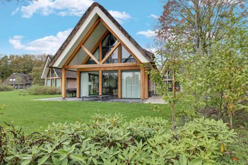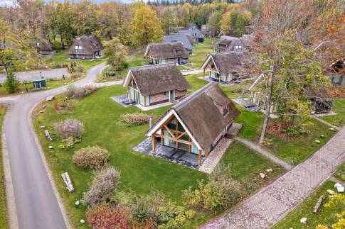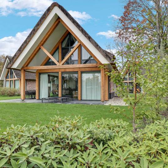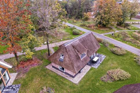 Deze villa is traditioneel gebouwd en de dikke rieten kap en robuuste Lariks houten spanten zorgen voor een authentieke uitstraling. De woning is gebouwd naar de huidige maatstaven en volledig gasloos. Het interieur is speciaal voor dit park ontworpen en heeft een warme uitstraling, is sfeervol en tijdloos.