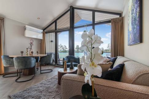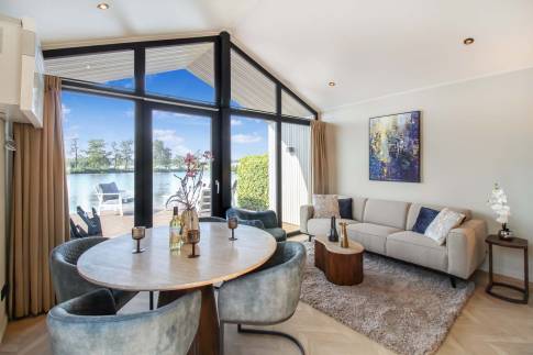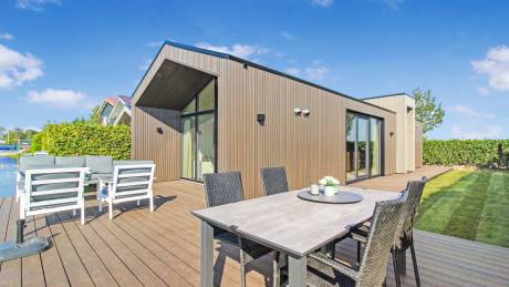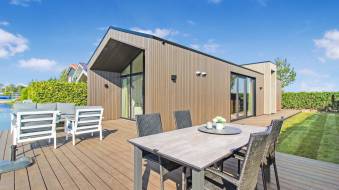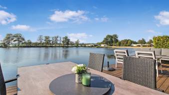 Het ultieme hoogtepunt van de waterlodge: het ruime vlonderterras dat zich uitstrekt aan de voorzijde en de zijkant van de woning. Hier is het genieten van een ochtendkoffie, een goed boek of samen dineren terwijl je geniet van de rustgevende geluiden van de natuur. Het terras biedt een prachtige plek om te ontspannen en te genieten van de heerlijke buitenlucht.