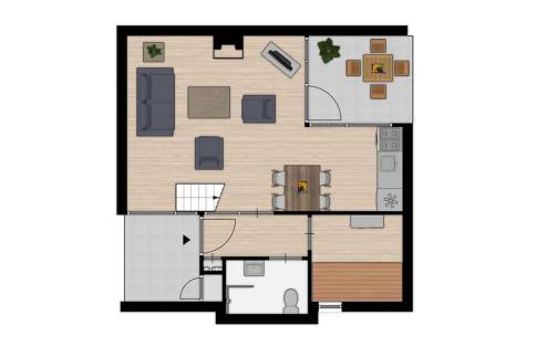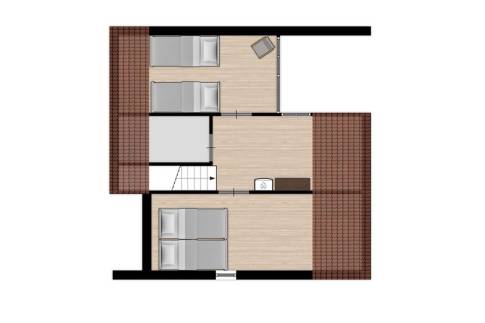 Op de eerste verdieping bevinden zich twee slaapkamers met in totaal vier eenpersoons boxspringbedden. De badkamer ligt op de begane grond en is voorzien van een inloopdouche en toilet. Uniek aan dit type: de aanwezigheid van een infraroodsauna, een gewaardeerde extra voor wellnessliefhebbers. Ook buiten is het genieten op het terras met tuinmeubilair, grenzend aan het groen. Parkeren kan op de centrale parkeerplaats.