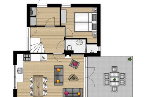 - Slaap- en badkamer op begane grond