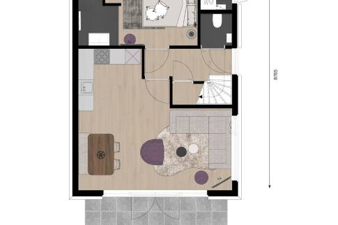 Deze woning biedt direct het gevoel van ruimte en comfort. Op de begane grond word je ontvangen in de hal met separaat toilet, waarna de woning zich opent naar een sfeervolle leefruimte met volop licht en een prettige verbinding naar het terras. De moderne keuken is compleet uitgerust en vormt samen met de woonkamer een fijne plek om samen te koken, eten en ontspannen. Op deze verdieping bevindt zich tevens een comfortabele tweepersoonsslaapkamer met een eigen badkamer voorzien van inloopdouche en wastafel. Op de verdieping wacht het wellnessgedeelte van de woning. Hier vind je een tweede ruime slaapkamer, een extra toilet en een royale badkamer die volledig in het teken staat van ontspanning. Denk aan een ligbad, een ruime inloopdouche met sunshower, dubbele wastafel en een Finse sauna.