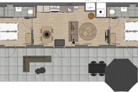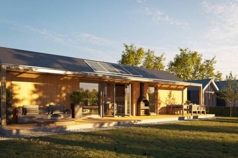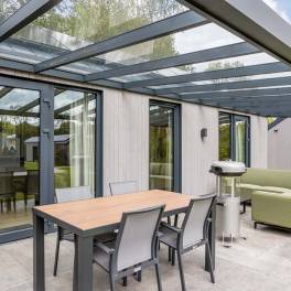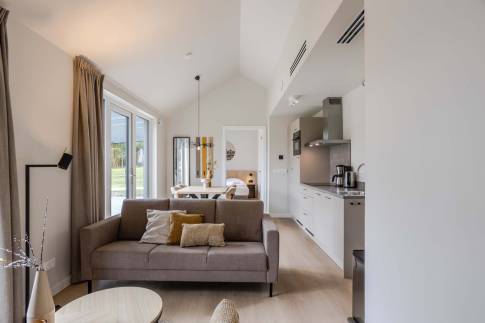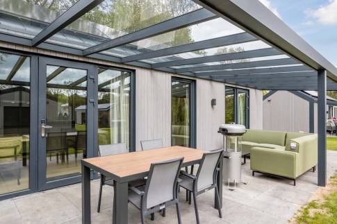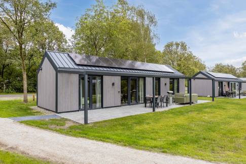 In deze terrasvilla heb je alle ruimte om de stilte op Landgoed Bourtange te ervaren. Dit is pas comfortabele luxe midden in de natuur. De gehele breedte van de woning beschikt over een terrasoverkapping met daaronder een BBQ/sfeerhaard, eet- en loungehoek. Je slaat de slaapkamerdeuren zo open naar het terras. Geniet in alle rust van het heerlijke uitzicht dankzij de glazen pui! Aan duurzaamheid geen gebrek dankzij o.a. zonnepanelen, full electric (gasloos), goede isolatie, kunststof kozijnen met HR +++ glas en een A++++ energielabel.
