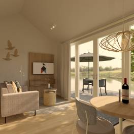 Droom jij al weg bij de gedachten van wakker worden op het water middenin de rust van de natuur? De Waterlodge Luxe Prinses wordt op palen gebouwd in het meer. Zo beleef je de natuur op-en-top. De woning wordt turn-key opgeleverd d.m.v. hoogwaardige materialen die ontwikkeld zijn voor lange levensduur. De lodge beschikt over een sfeerhaard, groot terras (inclusief tuinmeubilair) en een BBQ/grill. Aan duurzaamheid geen gebrek dankzij o.a. zonnepanelen, full electric (gasloos), goede isolatie, kunststof kozijnen met HR +++ glas en een A++++ energielabel.