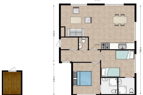 Zodra je Wellness Villa 278 binnenstapt, valt de ruimte gelijk op. De ruime woonkamer met open haard en comfortabele zithoek loopt via openslaande deuren over in het terras en de tuin. Ideaal voor lange, ontspannen dagen. De moderne open keuken is van alle gemakken voorzien, waaronder een combimagnetron, vaatwasser, koelkast met vriesvak en Nespresso-apparaat (in 2024 is het apparatuur vervangen). Deze gelijkvloerse woning beschikt over twee slaapkamers, elk met een eigen badkamer, waarvan één is uitgerust met een heerlijke sunshower.