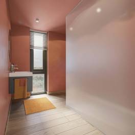 Het betegelde terras, direct grenzend aan de keuken, vormt de ideale plek om te genieten van lange zomeravonden of frisse ochtenden in de duinen. Hier vervagen de grenzen tussen binnen en buiten, en wordt het duinlandschap een verlengstuk van jouw verblijf.