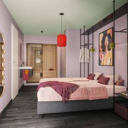 Het hart van de suite is de royale woon- en eetkamer, die naadloos overgaat in een luxe open keuken met kookeiland, perfect voor culinaire momenten. Beide ruime tweepersoons slaapkamers zijn uitgerust met een ensuite badkamer, voorzien van een eigen inloopdouche, wastafel en toilet, zodat iedere gast zijn of haar privacy volledig kan behouden. Om het ultieme ontspanningsgevoel te versterken, vind je in een badkamer een sauna, en in de andere een ligbad.
