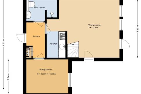Vanuit de woonkamer kijk je richting de keuken welke is voorzien van alle apparatuur die je nodig hebt. Het maken van de meest lekkere gerechten schud je hier zo uit je mouw. Zo is er een gasfornuis, een afzuigkap, een koelkast met een vriesvak, een combimagnetron en een vaatwasser. Op de begane grond is er ook nog een slaapkamer aanwezig met een tweepersoonsbed.