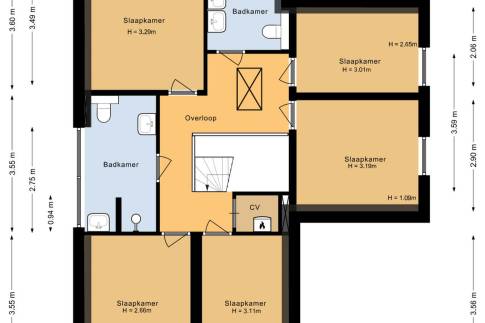 - Met o.a. zes slaapkamers, drie badkamers en drie toiletten