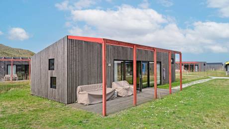Betreed deze ruime, vrijstaande lodge en ervaar direct het ultieme vakantiegevoel. De lichte en sfeervolle inrichting ademt een ontspannen kustbeleving, met een perfect gebalanceerde mix van levendige accenten en rustgevende tinten. De grote glazen deuren laten het daglicht volop binnen en openen naar een uitnodigende veranda, waar je in alle rust geniet van een drankje in de zon. Een optimale vakantiebeleving aan de Noordzeekust!