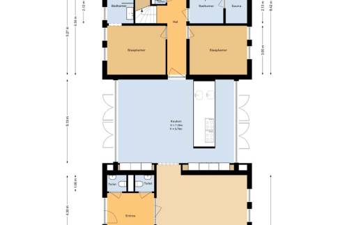 Bij binnenkomst ervaar je direct de ruimte en luxe van deze woning. De royale woonkamer is ingericht met een comfortabele zithoek en een smart-tv met streamingmogelijkheden, ideaal voor gezamenlijke avonden. Het aangrenzende eetgedeelte profiteert van veel natuurlijk daglicht en staat in directe verbinding met de moderne open keuken. Deze keuken is een echte eyecatcher en voorzien van een kookeiland met hoogwaardige apparatuur, waaronder Bora kookplaten, combi-ovens en meerdere vaatwassers. De aparte koffiecorner met luxe koffiebonenmachine maakt het geheel compleet. Op de begane grond bevinden zich vier slaapkamers, elk met twee eenpersoonsbedden, waarvan één slaapkamer beschikt over een smart-tv. Twee slaapkamers hebben een en-suite badkamer met douche en wastafel. Daarnaast is er een derde badkamer met een luxe privé sauna, douche en wastafel. Ook zijn er op deze verdieping drie separate toiletten, wat extra comfort biedt voor grotere gezelschappen.