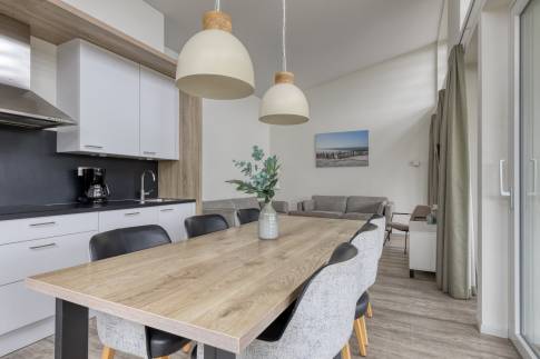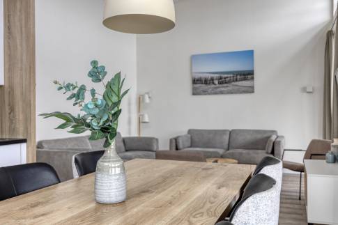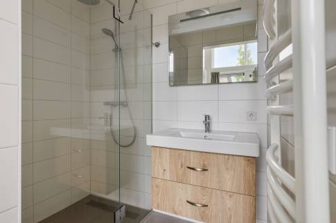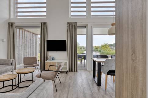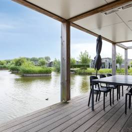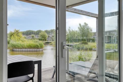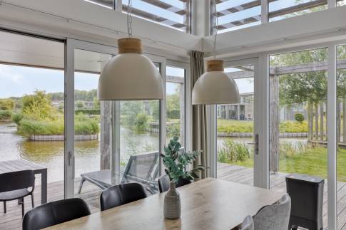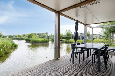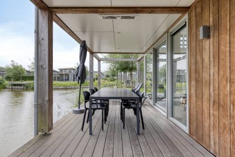 Bij binnenkomst via de open keuken valt direct de aangename sfeer en hoogwaardige afwerking op. De keuken is volledig ingericht en voorzien van moderne inbouwapparatuur. Aansluitend bevindt zich de gezellige woonkamer met grote raampartijen en een schuifpui die toegang biedt tot het overdekte terras met terrasheater en schitterend uitzicht over het water.