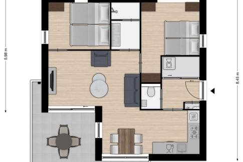 Stap binnen in deze keurig verzorgde 4-persoons woning en laat je verrassen door de lichte en open sfeer. Via de entree kom je in de gezellige woonkamer met comfortabele zithoek en openslaande deuren naar het terras en de tuin. De open keuken is van alle gemakken voorzien, inclusief vaatwasser, combimagnetron en koelkast met vriesvak — ideaal voor een zorgeloos verblijf. De woning beschikt over twee comfortabele slaapkamers. De nette badkamer is voorzien van een douche, wastafel en een separaat toilet. Buiten geniet je van een zonnig terras met tuinmeubilair en twee zonneligbedden. Kortom, een fijne plek waar genieten aan zee vanzelfsprekend is!