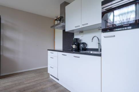 De open keuken is compleet uitgerust met een vaatwasser, combimagnetron, waterkoker en Nespresso-koffiemachine. In de gang bevindt zich een fijne sauna waar u heerlijk kunt ontspannen na een drukke dag. Daarnaast is er een separaat toilet.