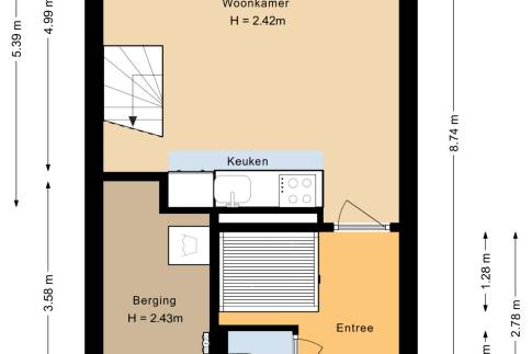 Aan de buitenzijde van de woning bevindt zich een aangebouwde berging, toegankelijk via een aparte ingang.