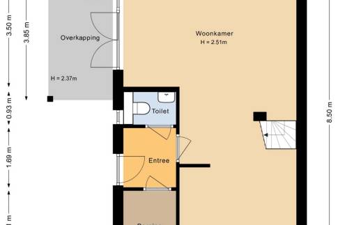 Zodra je de woning betreedt, word je verwelkomd in een sfeervolle en lichte woonkamer. De openslaande deuren geven toegang tot een zonnig terras op het zuidwesten aan het water. De open keuken is modern ingericht en voorzien van alle gemakken, zoals een combimagnetron, vaatwasser en voldoende werkruimte om lekker te koken. Op de begane grond vind je ook een apart toilet en een handige inpandige berging.