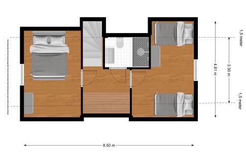 Stap binnen in een lichte, uitnodigende woonkamer met openslaande deuren naar het overdekte terras en panoramisch uitzicht over het water. De houtkachel vormt het hart van het huis, perfect om samen te ontspannen. De open keuken en eetruimte zijn voorzien van alle moderne gemakken en inbouwapparatuur. Op de bovenverdieping vind je een luxe sauna, een badkamer met inloopdouche en ingebouwde zonnehemel, plus twee comfortabele slaapkamers: één met tweepersoons boxspring en TV, en één met twee eenpersoonsbedden. Vanaf de woning kijk je uit over water en groen en geniet je van alle privacy aan de rand van het park.